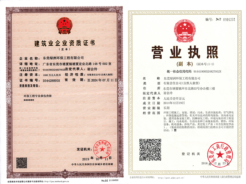 廣東省環(huán)保產(chǎn)業(yè)協(xié)會(huì)會(huì)員單位、東莞市環(huán)保產(chǎn)業(yè)協(xié)會(huì)會(huì)員單位、東莞市生態(tài)環(huán)境局備案認(rèn)證單位、廣東省高新技術(shù)企業(yè)、環(huán)保工程三級(jí)資質(zhì)等等
